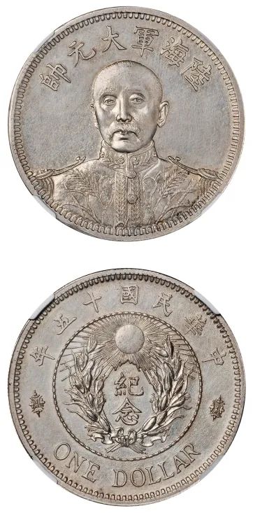简介:民国十五年张作霖戎装像陆海军大元帅纪念银币样币,KM-Pn79/LM-868,天津造币厂试铸,还曾铸有民国十六年、十七年大元帅纪念币,均未发行,存世仅见样币,其中,十六年最为稀少,十五年铸币亦属珍罕,迄今所见者仅约八枚;拍品呈类镜面,雕刻精美,铸工精湛,堪称中国近代人像币铸造之典范;此枚样币首度公开拍卖,近四十年来一直由藏家秘藏,流传有绪,资深钱币专家陈吉茂藏品,NGC-ACAB MS62