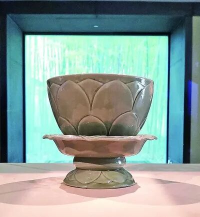苏州虎丘塔出土的五代时期越窑秘色瓷刻莲瓣纹碗本报记者李韵摄