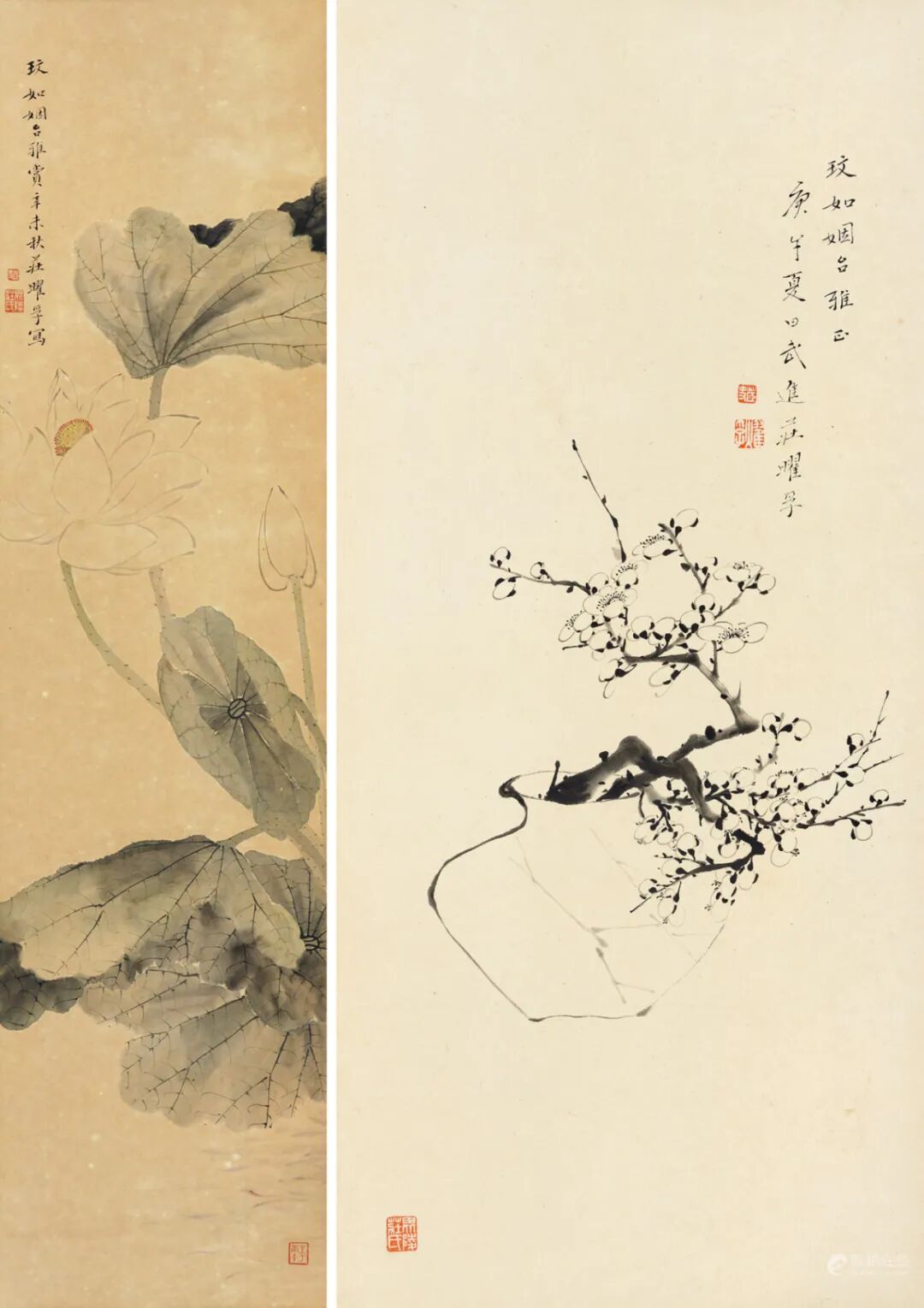 中国书画从古至今名家辈出,百花齐放。本专场集中国古代、近现代名家书画于一体,汇聚了董琬贞、吴茞、庄曜孚、王炽明、钱与龄、程娴等古代女性绘画专题,以及黄山寿、包栋、翁同龢、康有为、黄宾虹、张大千、沈尹默、胡适、刘海粟、谢稚柳、陆俨少、李苦禅、程十发、于右任、萧龙士等名家书法、绘画专题。从传统到现代,呈现了各家风貌,丹青集萃,精彩纷呈。拍品估价:150,000 - 200,000 人民币款识:群仙祝寿。仿南宋院设色画法,恐未合法乎古人神意之趣。蓉湖女史董琬贞为曼叔六表弟画。即希正之。作者简介:董琬贞,女,字双湖,号蓉湖,因其“生长蓉湖家澈湖”故自号双湖女史,海盐澉浦人。清代著名女文学家、书画家。董琬贞原籍江苏常州,其祖父董潮入赘海盐陈氏,因而占籍海盐。董潮擅长诗文,亦善绘画,为当时嘉禾文坛“八子”之一,居海盐澉浦。琬贞自幼受祖父诗文书画熏陶。成年后嫁汤贻汾为妻。汤为当时艺坛高手,工诗词、擅书画。自此,董琬贞诗文书画益进,山水花卉,书法篆刻,靡有不工,尤善画梅。拍品估价:100,000 - 150,000 人民币作者简介:庄曜孚,女,字茝史,号六梅室主人,江苏武进(今常州)人。陈韬妻。清末著名画家和书法家,得恽寿平(南田)画派真传,与吴昌硕、齐白石齐名,以没骨花卉见长。