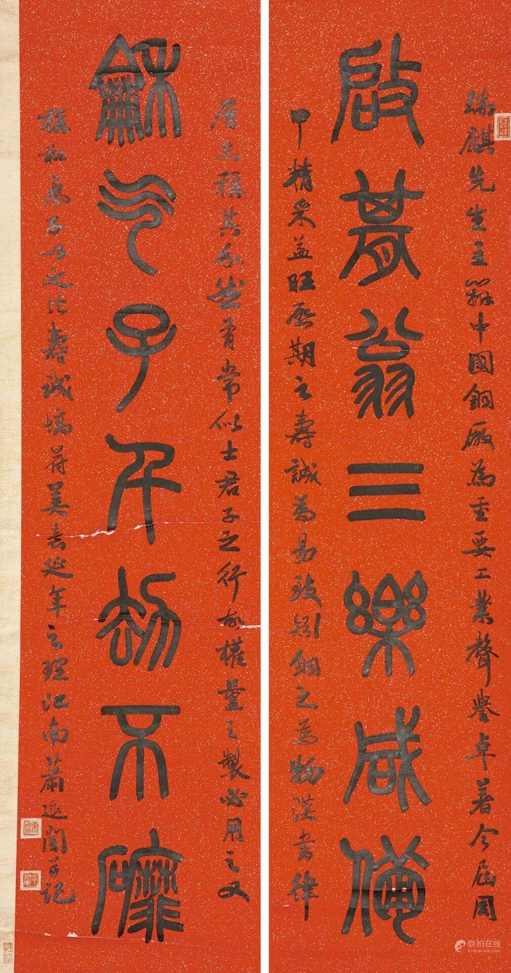 南京经典今秋第8次推出「同一藏家同一上款书画」专场。本场汇集了多位私人藏家数年珍藏佳作以及“爱平楼”、“沙曼翁家属旧藏”专题书画。集聚了钱松喦、宋文治、林散之、萧娴、费新我、陈大羽、王蘧常、赵云壑、陈佩秋等众多古今名家书画,以及叶圣陶、章士钊、李苹香、沈从文、季羡林、林语堂、巴金、王映霞、华罗庚等各界文化名流的丹青雅作,作品或带有藏家上款,或为家传,来源明晰,保存完好,流传有序。款识:书陈迦陵词,以应姚迁同志雅令。一九八零年五月,叶圣陶。*225至229为“姚迁”上款作品。姚迁(1926-1984),原名姚宪昌,江苏如皋人,曾任南京博物院院长。拍品估价:150,000 - 180,000 人民币拍品估价:350,000 - 400,000 人民币*242至246为“舒平上款”作品。舒平为原江苏省美术馆书记。拍品估价:100,000 - 120,000 人民币拍品估价:100,000 - 120,000 人民币拍品估价:400,000 - 500,000 人民币款识:雨后东篱野鞠寒,骚人常把菊英餐。朱门酒肉熏天臭,醉赏黄花当牡丹。吴昌硕老缶画,时年壬戌十一月朔。Lot 341 萧退闇 篆书七言联