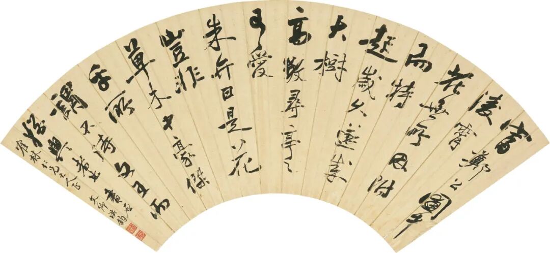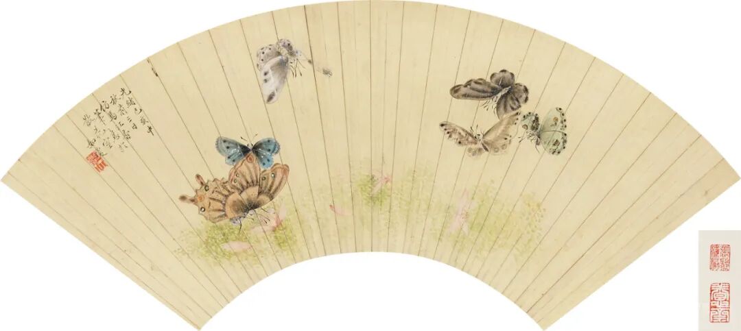 扇子本是消暑之物,可与文人士大夫相遇,盈尺之幅便有了大文章。董仲舒《春秋繁露》,记以扇逐暑;班婕妤《团扇赋怨》,抒深宫幽情。唐罗隐“为爱红芳满砌阶,教人扇上画将来”,可成诗入画。于是,扇,可寄情抒情,可写春秋文章,可绘丹青翰墨。扇,因才子佳人,成了扇之雅事。今秋「 扇赋春秋——中国名家扇面」专场,收录了方月娟、李珏、梁孟昭、钱与龄、毛韵芬、席佩兰、程娴等古代香闺女史;任伯年、任薰、谢稚柳、于非闇、张淇、吴青霞、陈佩秋、应野平、吴石仙等书画大家;以及胡汝嘉、金德瑛、彭启丰、胡林翼、洪钧、史大成、缪彤等明清翰林状元。作品或绘仕女佳人,或写花鸟虫草,或书锦绣诗篇,诗情画意,相映成趣。与君手执一扇,闲情逸致,尽得风流。款识:国色露洒酣卯酒,天香风动拂丁帘。戊寅初夏,偶摹南田翁笔意,写于吟香馆,月娟女士。作者简介:方月娟,女,字佩贞,青浦(上海)市人,书学董源,得其秀润,虽发斑,尤仗笔墨为温合。拍品估价:100,000 - 150,000 人民币款识:光绪己亥中秋前三日,仿马江香笔意于散花馆,如琼。作者简介:李珏,清代女画家,号如琼,江苏常州人。洗山女,适婺源斋梅孙。拍品估价:100,000 - 200,000 人民币鉴藏印:马日璐藏本(朱)数青兴堂藏扇(朱)金黼廷瘦仙氏收藏(朱)作者简介:梁孟昭,女,字夷素,钱塘(今杭州)人。茅九仍妻。工词翰,雅善山水,深远秀逸,风致不群。亦工花鸟,文学家陈继儒称她的画是"天女花、云孙锦,非人间所易得"。被誉为"一代作手"、"女士之表表者"。绘画和书法也驰名一时,尤工花鸟、小楷。备注:马日璐鉴藏印。马日璐(1697-1766),字佩兮,号半槎。马曰管弟。与兄并荐博学鸿词,不就,名重一时。好学、工诗、喜结客,一如其兄。款识:唐人壁画中有此一格。辛巳冬十月,制于玉山砚斋,非闇。边跋:非闇先生工笔花鸟现代一大师,此其一九四一年所拟唐人壁画之双飞天扇面真迹。线描功底非凡,遒劲而飘逸生动,殊可爱也。戈父萧平识。Lot 116 胡汝嘉 草书扇面