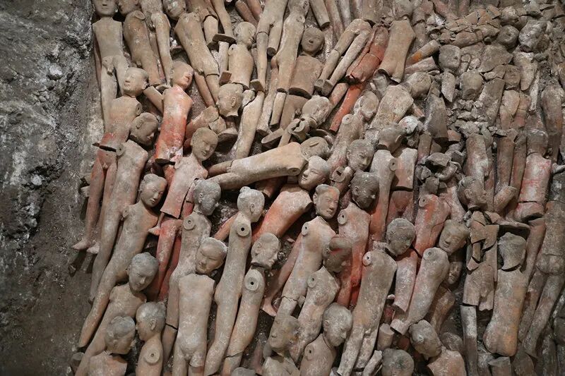 其中,“亞”字形的墓葬形制、印有“车府”“器府”等文字的铜印印文、上千座彩绘的着衣式陶俑……无不向我们宣告着,江村大墓的形制、规模均符合西汉最高等级墓葬规格。