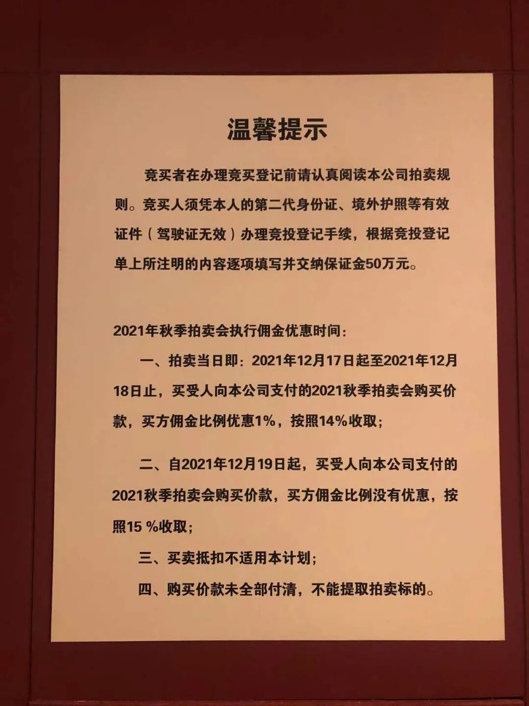 本场拍卖会保证金为人民币伍拾万元(RMB 500,000)