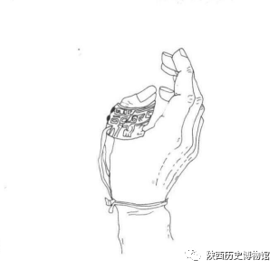大家还记得之前介绍的“虎纹韘形玉佩”吗?是否对“韘”的使用及“韘到韘形佩”的发展充满好奇?今天一起继续研究吧~韘,也称決(同“决”),为古代射箭时的工具。《说文解字·韦部》:“韘,射決也,所以钩弦。以象骨。韦系。箸右巨指。”《广韵》卷五:“韘,射決张弓。”即韘是射箭的人戴在右手大拇指上,并用韦固定以免滑落,作拉弦开弓之用。弓弦很细,用手指拉曳数次之后,手指会感觉疼痛,所以需要戴上韘,以免去手指疼痛之虞。使用方法如上图。普通人所用的韘是用皮、革、竹、木等材料制作的,非常不容易保存,只有极少数政治领袖、军事统帅使用的代表其权力和地位的玉韘在考古中被发现。《礼仪》中对韘的记载比较多,由此可知,韘用于开弦,戴在右手大拇指上。生时所用者质料为象骨;死时所用者质料木质。考古材料也证明了这一点,出土文物中以玉质材料最多,骨质其次,木质、漆质和牙质也都有出土,后三者虽然材料较少,但这应该是受到墓地所在环境和保存情况的影响。商代和西周时期仅见玉韘,也许是因为随葬用韘由于材质问题未能保存下来。东周时期出土的韘质料变得丰富,不仅有玉,还出现了骨、漆、石、木和牙质等。这一时期部分韘逐渐丧失实用功能而转变为某种权力的象征。西汉时期,韘一改其原先的圆筒状,变为适宜佩挂的扁平状,也就是我们所说的韘形佩。完全丧失了作为实用器和权力象征的功能,转变为纯粹的装饰品。因大多用玉制成,所以也称为韘形玉饰(佩)。![1.png]()