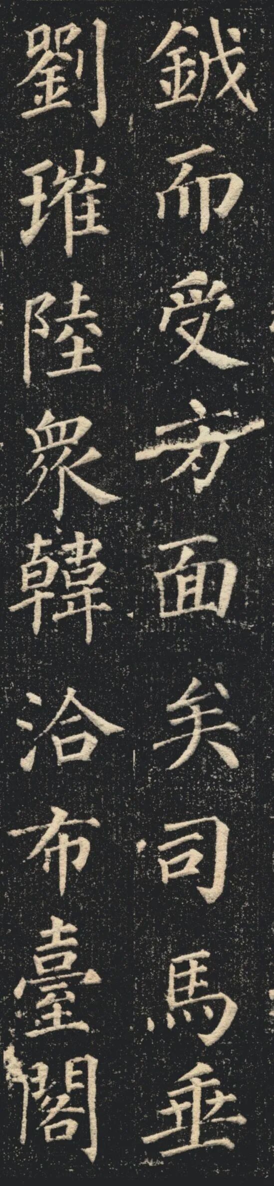 《始平公造像》明显表现出了北魏造像雄奇角出、刚健雄浑的审美特征。方笔如刀砍斧削般劲健,点画似折股断簪,“平”字有金刚怒目、力士挥拳之态。《刘弘墓志》不同于《始平公造像》阳刚一路的碑刻,与《穆玉容墓志》同属温婉秀丽一路。《穆玉容墓志》飘逸娴雅,《刘弘墓志》则显得方正挺拔。《孔子庙堂碑》如君子一般端庄典雅,温润含蓄,恰如张怀瓘《书断》评曰:“君子藏器,以虞为优”。