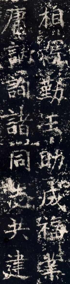 《刘弘墓志》“易”字极有奇趣,字形偏长,下部“勿”字四个撇画近两两平行,且其转折为墓志中少见的圆角,若弓弩,上部“日”折角为方,其方圆各异,筋骨俱显,字形“奇诡”,而《崔鸿墓志》《雁塔圣教序》《信行禅师碑》“易”字中,下部“勿”基本四撇平行,且折角均为方角,显露刚健书风。