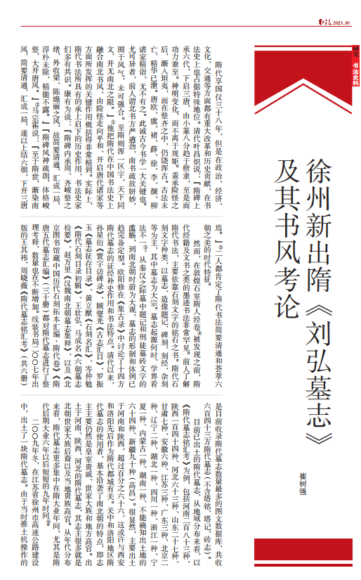 《刘弘墓志》为北齐文豪薛道衡制文,它的发现同时为隋代文学史增添了新的史料。更为重要的是,该墓志铭有着较高的书法造诣,其文字是隋初北方楷书发展过渡阶段的代表作,为中国书法史之隋代部分做出了重要补充。王客临摹《刘弘墓志》
