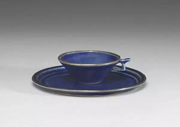 元 江西景德镇镶银扣篮釉描金把杯盘
