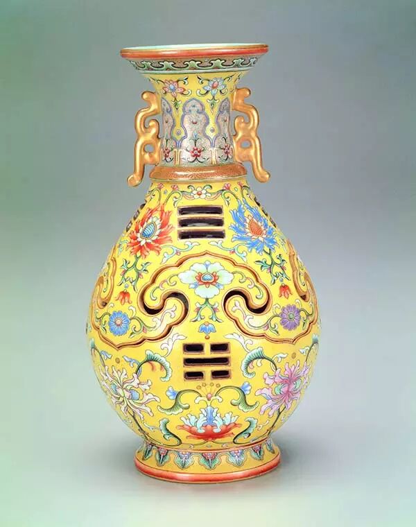 清乾隆朝 黄釉粉彩八卦如意转心套瓶