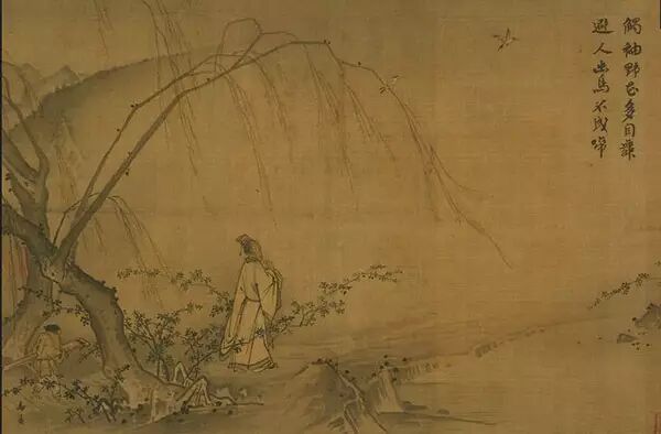 马远为宁宗朝画院待诏,善山水人物,他学李唐,但更加简率;树石多从巨然;人物衣褶,基于吴道子成兰叶描。以马夏为代表的南宋晚期山水画,在空间上的“虚空”表现,成为了统一整个画面的视觉载体,是对稍纵即逝的美景有所彻悟后反思的视觉表达。