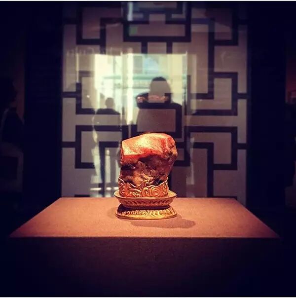 似玉美石中,石英类的玛瑙、碧石等,亦因为具有特殊且多样的纹理与色彩,而经常施以巧雕。“ 肉形石”为碧石类矿物,其纹理层层堆叠,艺匠据此天然特征再予以加工。首先于表面细密钻点,除营造毛孔的效果外,还使质地较为酥松,易于染色。其次便是将上层染成褐红色,像是肉皮浸过酱油一般。让冷硬的石头,联想成为“东坡肉”一般鲜嫩多汁、入口即化的好滋味,是天人间默契的巧作。