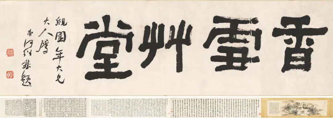 不知道各位是否了解过当代作家陈忠实长篇小说《白鹿原》写作中承载历史写作和文化记忆问题。许子东曾提示读者要看到《白鹿原》“后设的历史叙述结构”,这是一种超越大历史叙述的“民族秘史的写作”。我们看到,《香雪草堂》图卷背后隐约可见的大事,比如太平天国战乱、日本侵略战争;或道咸之交,封建王朝终结这样的大历史背景,但邓尉山中的香雪草堂仿佛拥有自己的逻辑,也有着自己审视历史的视角。