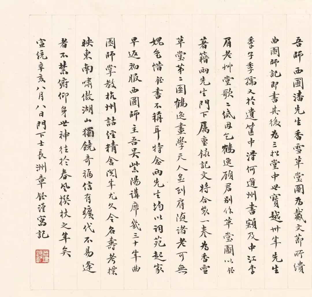作为俞樾和潘遵祁共同的学生,章鈺抄录了俞樾光绪元年所撰《香雪草堂记》。又记潘季孺如何于遗箧中得何绍基篆额及李鸿裔《草堂歌》,再乞顾鹤逸作画。章鈺跋后,合装一卷定为《香雪草堂第二图》。俞樾《香雪草堂记》流传广泛,著录于《苏州历代名园记》等各处。