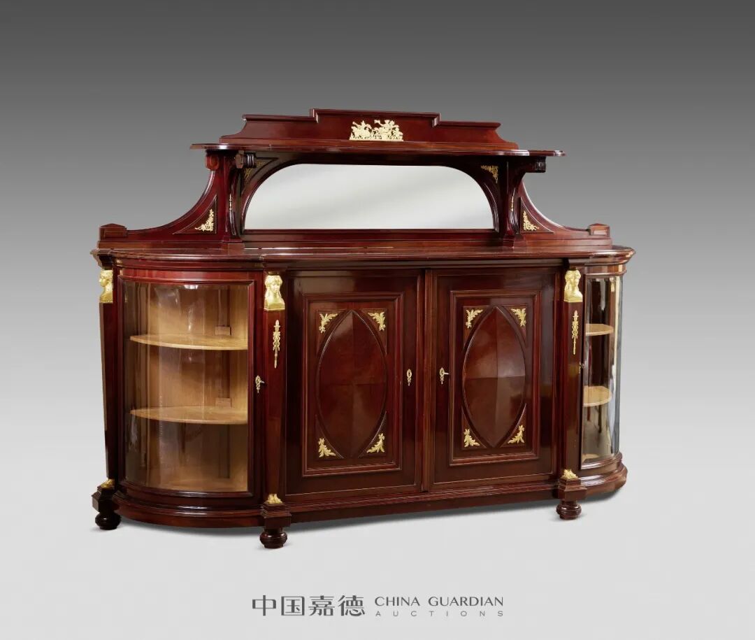 约1890年 法国帝国风格铜鎏金及桃花心木大边柜