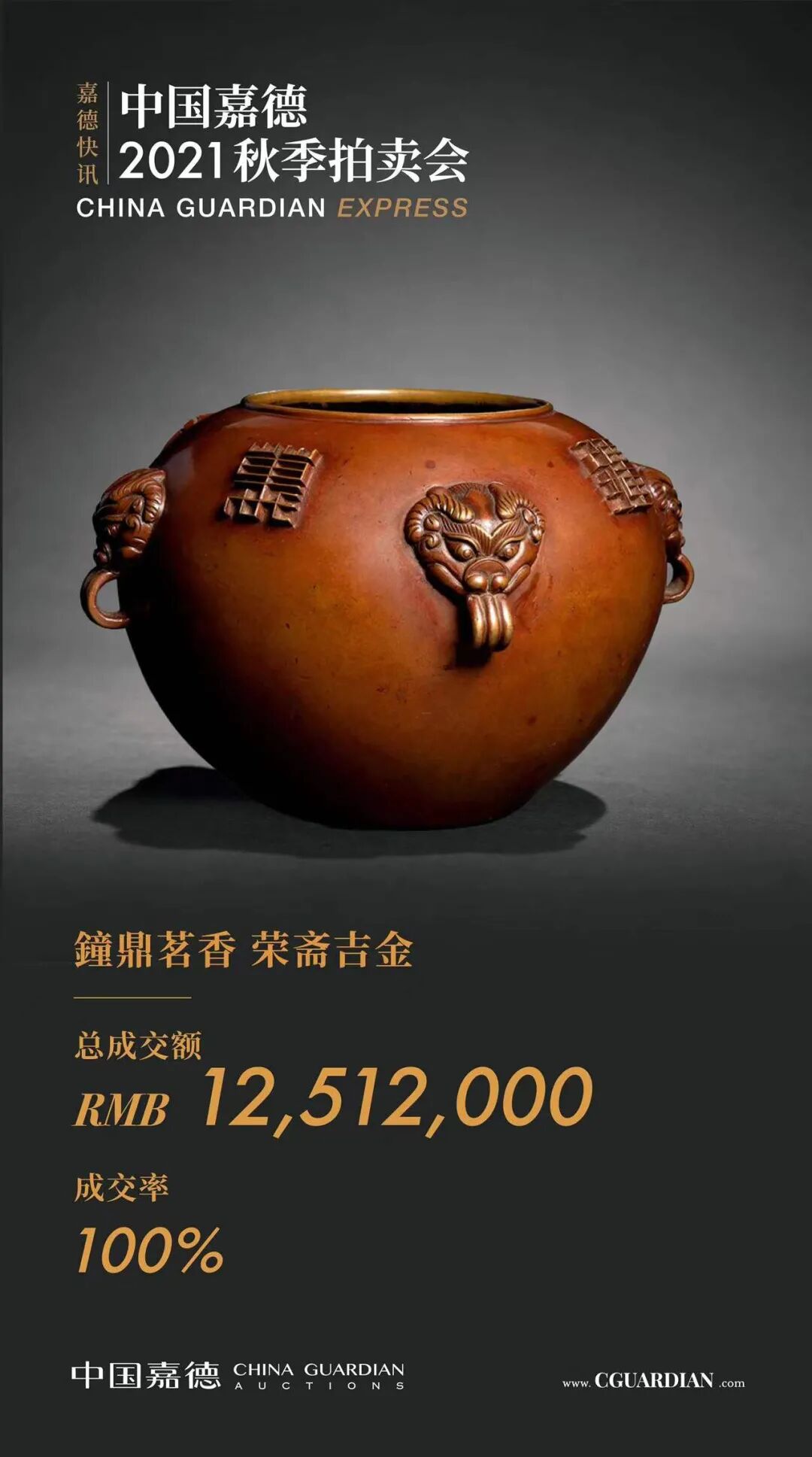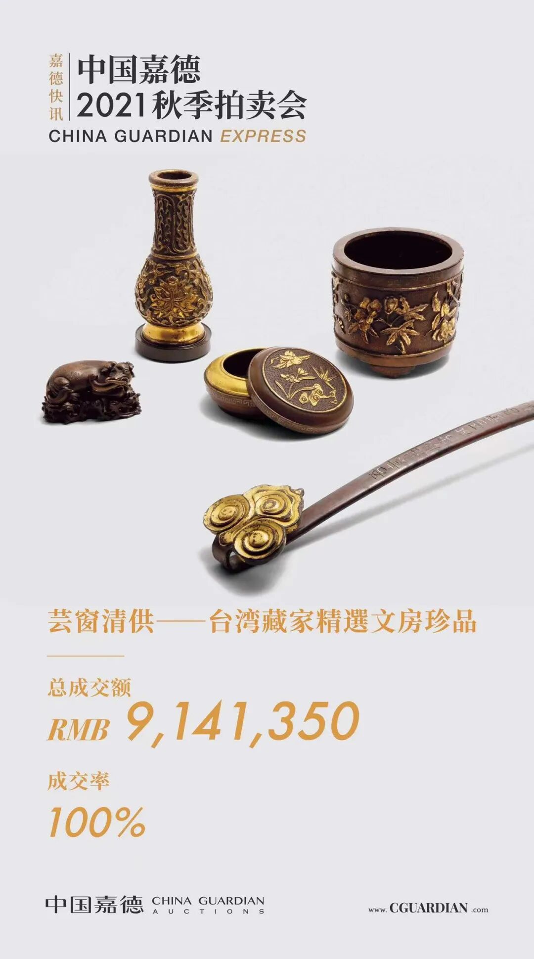 ●小价位拍品成交火爆,瓷器、文玩杂项成绩超出预期,“芸窗清供—台湾藏家精选文房珍品”、“鐘鼎茗香 荣斋吉金”两专场及“湛园”专题100%成交