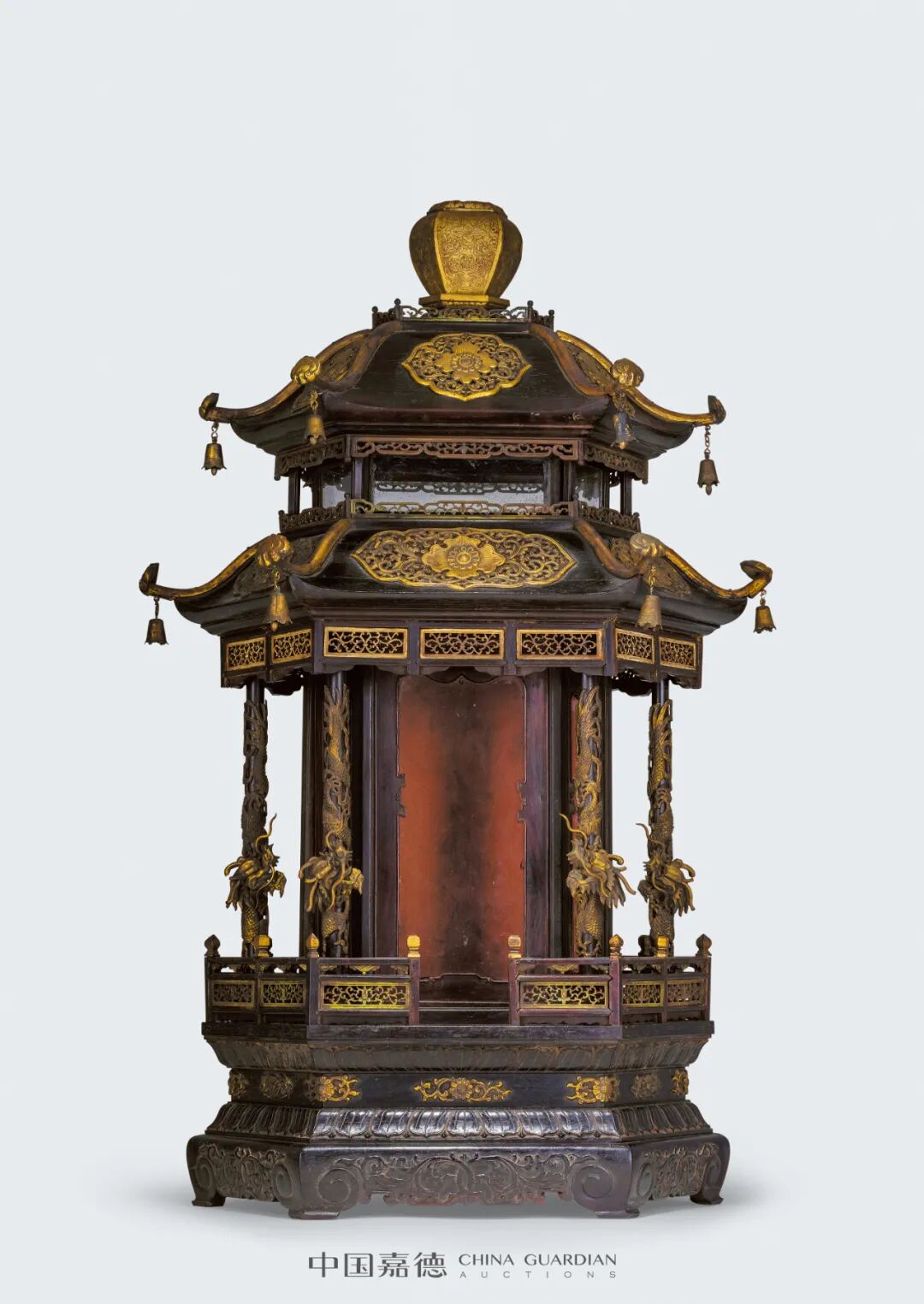 清乾隆 紫檀嵌铜鎏金宝相花纹亭式佛龛
