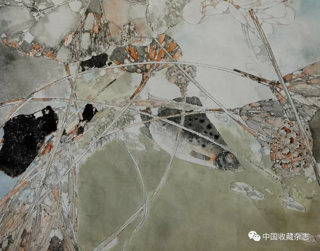 卢东《秋荷》局部