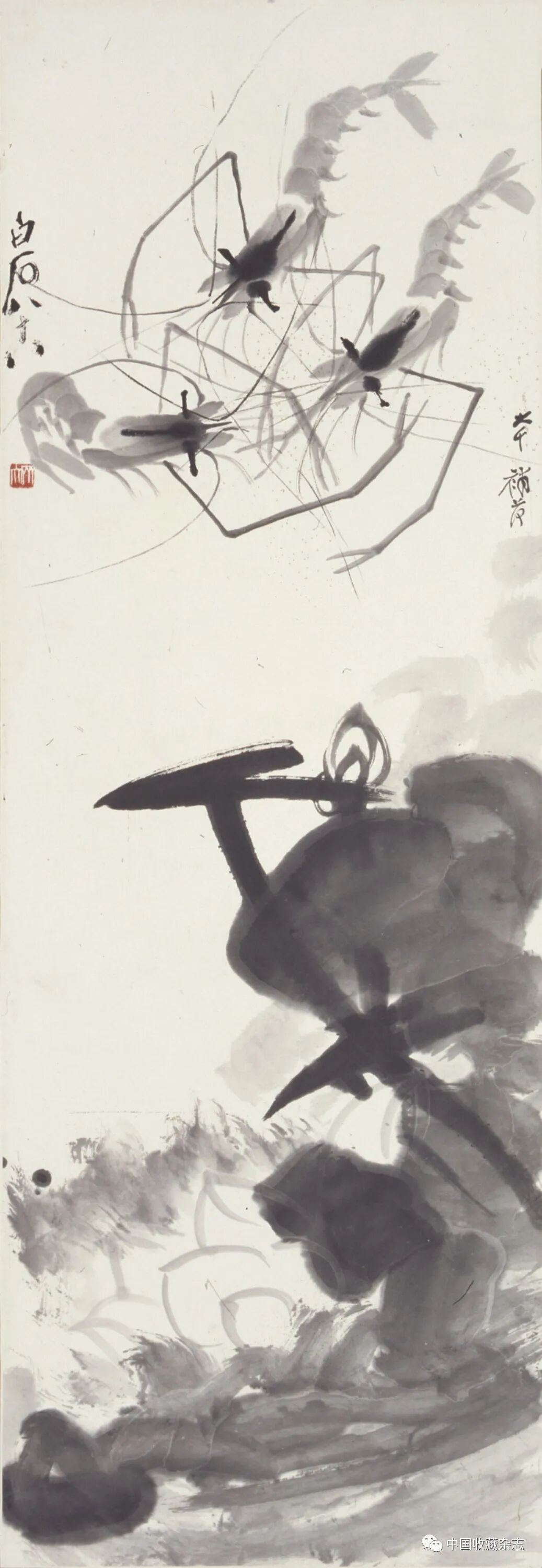 齐白石与张大千合作《荷虾图》