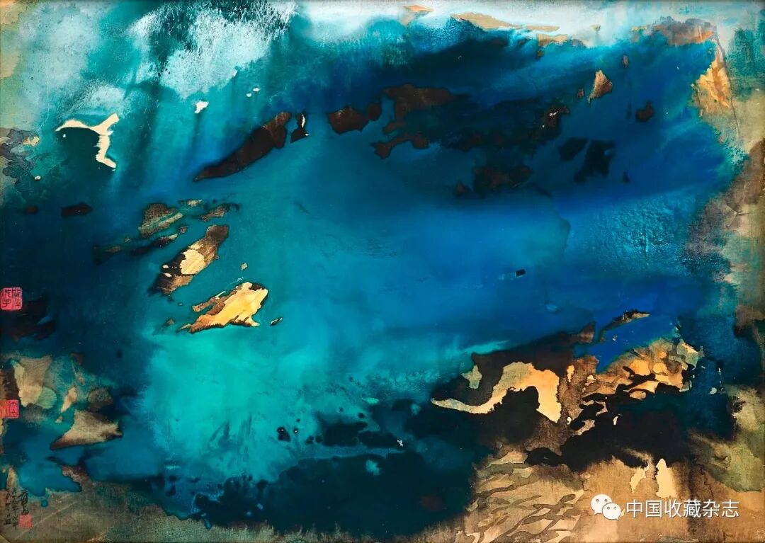 此作绘制于1968年,其时正值艺术家泼墨泼彩高峰期,整幅逾六平尺,尺幅巨大。尽管画面中大胆使用抽象手法,但依然体现出中国传统山水画的意境与韵味。据了解,此作完成后,曾于1969年参与了巴西一次非常重要的画报拍摄活动,又于1973年先后参加了张大千在洛杉矶和汉城举办的个人展览,更在1988年举办的纪念张大千诞辰90周年纪念展中亮相,可谓流传有绪。