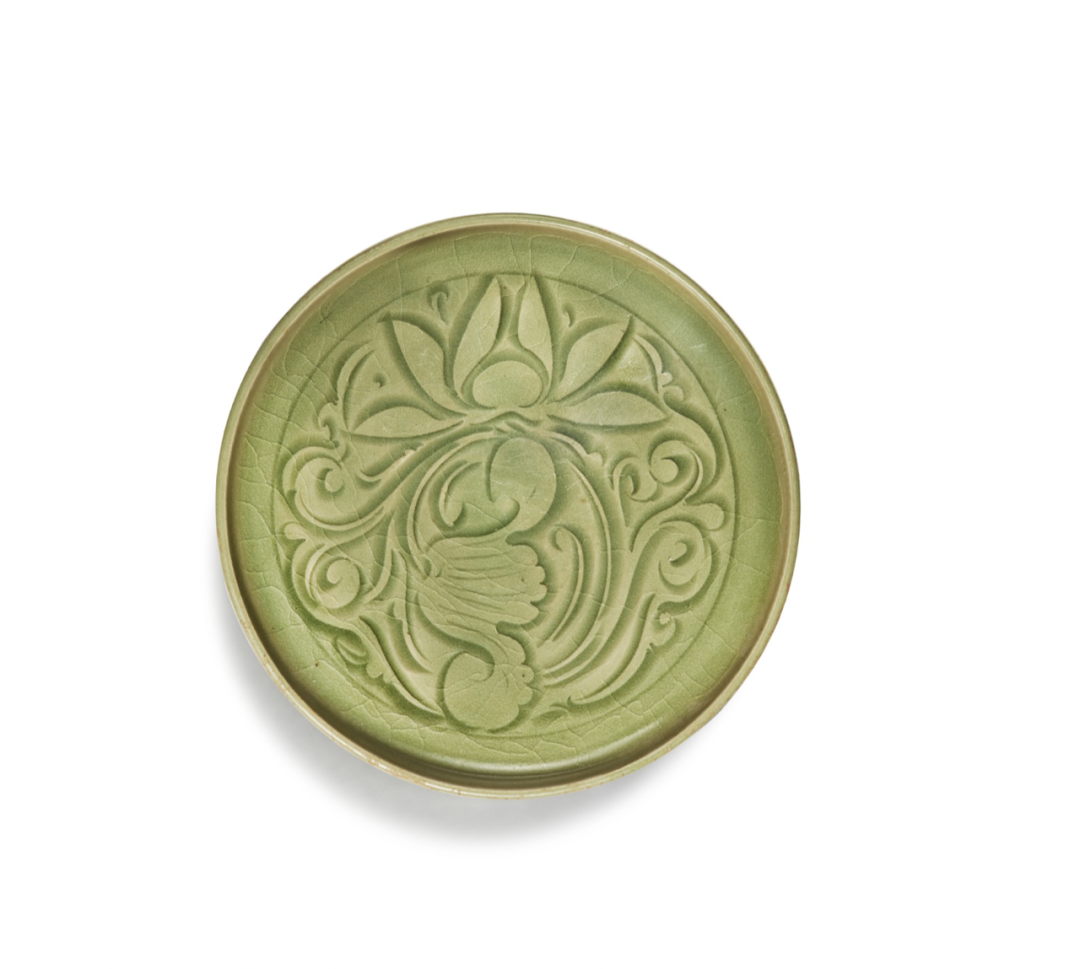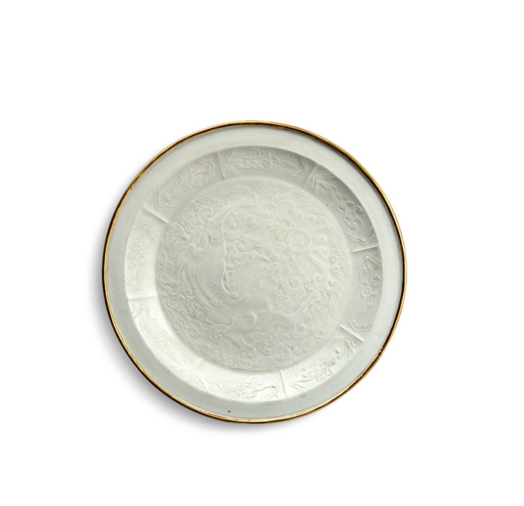元樞府白釉印花纏枝蓮紋盤