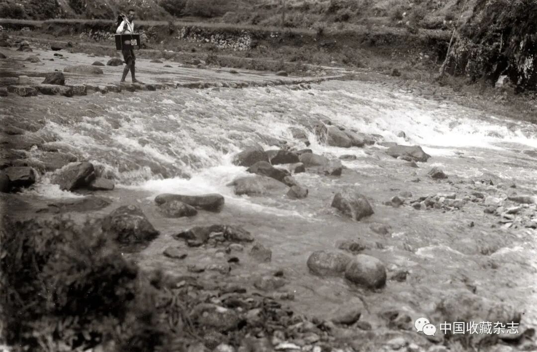 释文:1.冷月先生赐鉴:顷谈甚快,仰慕已久,乃荷先施宝,深愧感。汤君临泽已晤见,以先生语语之,亦蒙允诺,恳即与贵校长言明,由校正式聘请。汤君名安,嘉兴人,书宗南派,略近欧、虞两家,金石刊划并世罕出其右者。敬颂教安。汤君近着《石鼓文攻止》,不日将由有正书局出版。悲鸿顿首,五月十一日。2.冷月先生赐鉴:前日畅谈为快。暨南以方兴之学府,嗣艺术之新科,得足下长才,详为规划,可胜庆掌。兹有恳者,敝岳蒋兆燮先生,号梅笙,历任南洋、大同、复旦等校教授已几二十年,长于诗古文辞,居沪久者类能相识。自去年始乃任丁卯学社(即约翰旧部)教席。比因该社前途无望,不欲继任。居恒服贵校陈钟凡先生学术,曾采其所著《诸子通谊》为教本。窃愿以先生私意,略谋暨南七八小时国学之课,凡经学、诸子与诗词皆所胜任。其为人诲人不倦,勤勉逾人,生平未尝轻易告一时之假,教育界中所仅有者。著述以诗为多,沪所发行者有《庄子浅训》等。务祈先生大力为之吹嘘,感荷不尽。敬颂教安。弟悲鸿顿首,六月十四日。挑夫肩挑摄影器材箱走在雁荡山灵岩至能仁寺途中。1937年