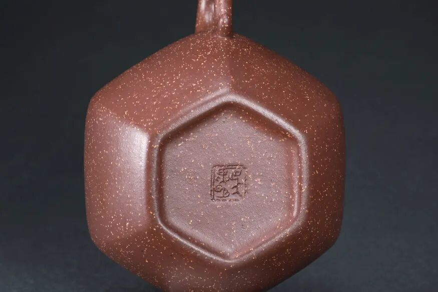 当代 吴界明制 紫泥铺砂六方莲子壶
