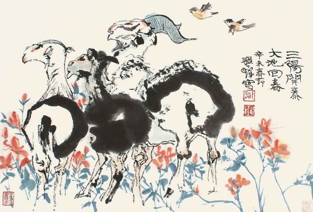 题识:三阳开泰,大地回春。辛未春节,程十发写。