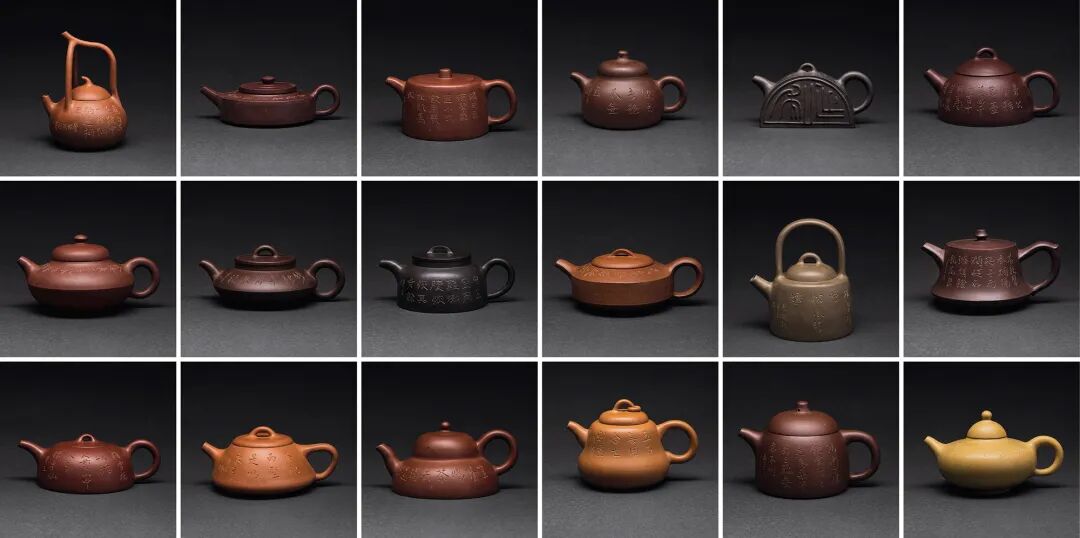 十八式每式都撰拟题铭,分别书写,由杨氏兄妹加制,曼生在壶上题铭书刻,这些加工制作的茗壶正契合了中国文人雅士在美学上追求幽野之趣的理念,在当时极受文人雅士的喜爱,故称之为“曼生壶”。