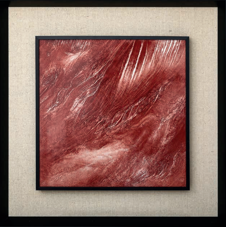 此作运用陶瓷泼绘的手法表现山的气势和精神内涵,通过流动的肌理和气韵的贯通,使整件作品赋予灵动的生命,红色基调让人联想到自然霞光的幻境,以此抒发对大自然的向往情怀,也是对心灵的蔚籍。