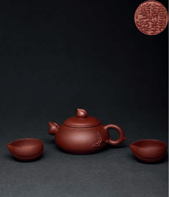 本作品在清代嘉道时期紫砂先师邵大亨传器《德钟壶》基础上取其神形,突破创新,师古不泥。将原作正圆身桶做成颇具设计感且工艺难度更高的腰圆型,并为紫砂泥绘文人画留出了更大的平面。壶身正面采用多种原矿紫砂泥料将海派书画大家谢稚柳工笔花鸟画,背后刻绘陈佩秋亲提壶铭,个中神采展现无虞,泥绘刻画逼真,工艺丝丝入扣,佳禽之麟毛根根可数,真正做到了用紫砂本源之“五色土”表达了中国传统工笔花鸟画的精髓,用这门传统工艺将宜兴紫砂与海派书画进行了有效地结合。