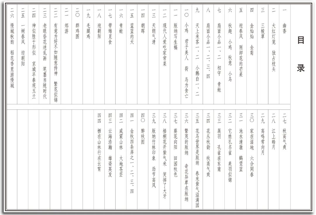 《荣宝斋画谱231—齐辛民绘花鸟部分》收录了齐辛民先生创作的鸡、鹅、孔雀、鸽子,各种花卉等50余件作品。齐辛民先生的花鸟画体现了形而上的精神世界,画中抑扬顿挫、婉转起伏的动感、节奏感传达着人的情感,流动的线条充满活力,那种张力、气势、神韵、元气淋漓的作品彰显着作者品格修养的精神状态和人格魅力。其花鸟画中的枝干藤蔓、繁花野卉等千姿百态、曲折多变的形象,处处发挥着作者的笔墨精神和情感。