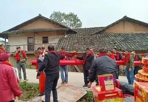 在上屋顶正中的一根桁架(也叫栋梁)时,需要先行祭梁,由木工师傅主持仪式。