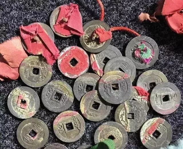 因为这些铜钱可能不是一枚,一般为六枚,取六六大顺的寓意,有条件的大户人家,也可能放上一个木盒,意为“宝盒“,宝盒内则为多枚铜钱,就没有准数了?