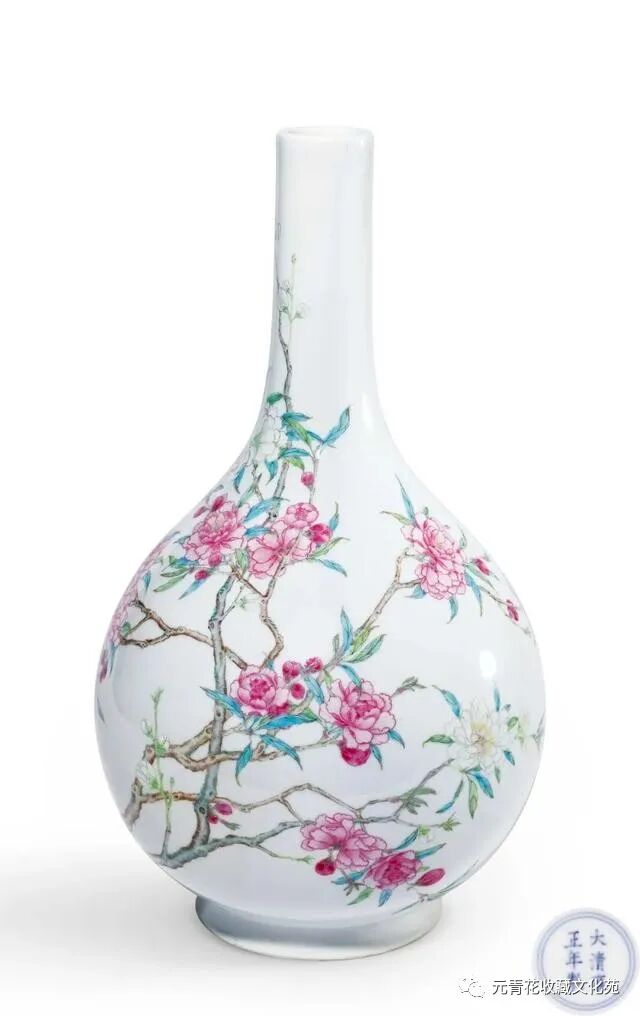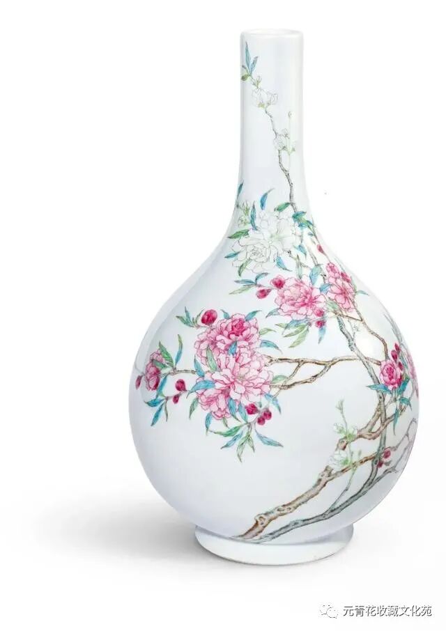 951清雍正 御制瓷胎洋彩珐琅春风碧桃图胆瓶