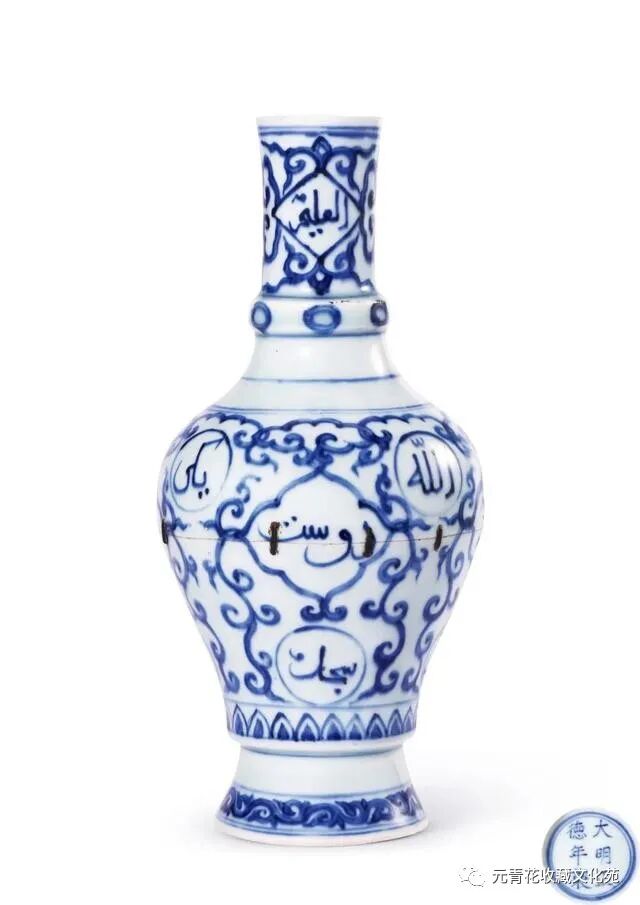 945明正德 青花缠枝如意开光阿拉伯文甘露净瓶