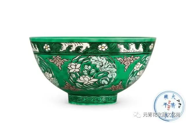 拍品工艺、画片极为少见,为康熙御窑专制精品。通体素三彩装饰,素三彩是康熙朝瓷器的名贵品种,因其色调冷艳、素雅,且用彩上底色釉不施红彩,而以黄、绿、紫三色彩料为主,并辅以少量白、黑两色作搭配图案而得名。早在明成化年间,其作为景德镇生产的一种釉上低温彩瓷器,即已出现并取得了一定成就。至康熙朝,其不仅传承了明代技术并进一步发扬光大,而且成为了中国陶瓷史上的素三彩制瓷之全盛时期。