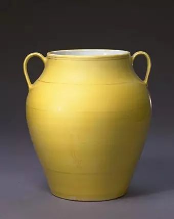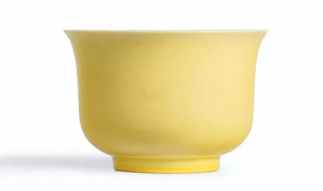 酱釉:此为前朝制品的延续,有别于前朝制品,酱釉是凹于釉面的,此为鉴定依据。 弘治色釉瓷 弘治“娇黄”釉 黄釉用含铁成分较高的天然磁石赭石为着色剂,烧成温度稍高于850~900℃。此种釉瓷器在宣德时期已经烧成,但釉色不够纯净,以弘治黄釉最佳。因呈色淡而娇艳,釉面肥润莹亮,故有“娇黄”之称。由于这种黄釉瓷器是用浇釉的方法施釉,所以也称作“浇黄”。