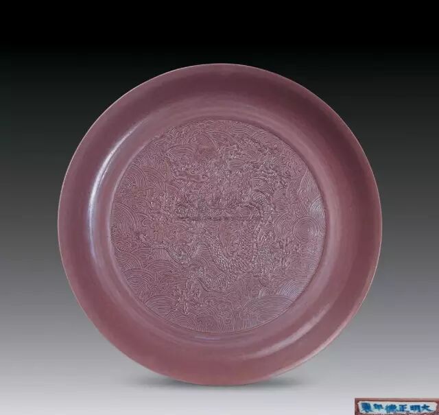 红釉:与宣德红釉一样,有明显的桔皮纹,署本朝年款,如盘、盘心微凹陷。