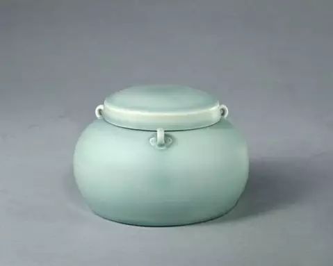 (1)翠青釉:这里永乐仿龙泉釉中呈色较浅的一种,为永乐朝独有,其色泽光润,青嫩如翠竹而得名,翠青釉的玻璃质感较强,釉中隐含密集的小气泡,制作极为精细,传世品稀少。器型多为三或四环的小盖罐,高足杯罕见,器内外光素无纹,通体施翠青釉,近来发现有“堆花”装饰的云龙纹翠青釉高足杯标本,证明光素器以外,还生产过少量带花纹的器皿。鉴定永乐翠青釉主要有两点:一是下部色深处釉厚,二是釉内气泡密集。