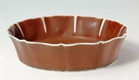宣德色釉瓷 宣德时期的红釉瓷器,制作工艺进一步创新。其特点是在器物的口部及凸棱部位露出纯净的白釉边线,有如灯草一般,故称“灯草边”或“灯草口”。它是铜红釉在烧制过程中通过化学变化形成的,古代匠师就利用这一变化,作为瓷器的美丽装饰。如红釉菱花式洗,通体由10个花瓣组成,花瓣的间隔线凸起,全器的里外壁均满施浓郁红釉,间隔线及口边均露透明的白色釉,红白相映,宛如一朵盛开的鲜艳菱花。