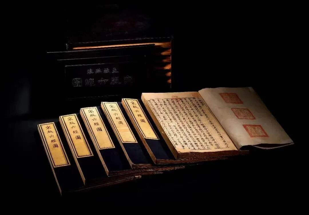 「璀璨」夜场另有数幅宫廷书法珍品,均来自于《石渠宝笈》、《天禄琳琅》和《三希堂法帖》。其中《天禄琳琅》旧藏《六经图》是市面所流通的九部全书之内开本最大的一部。