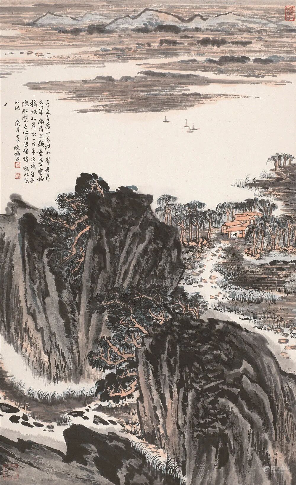 拍品估价:1,200,000 - 1,800,000 人民币题识:予近去庐山,至江西界。舟行大江中,南岸冈岭重叠,云树掩映,北岸则一片平沙,弥望无际。船舷小立,心目俱旷,归写此图以记。庚申(1980年)七月,陆俨少。钤印:俨少(白)、宛若(朱)、嘉定(朱)、庚申七十二(朱)出版:《海上名家》第94页,上海文物商店,1980年。2.1980年7月18日,陆俨少夫妇与刘旦宅夫妇启程同游庐山,纪游写生。陆俨少万青屴与他们同行。《庐山纪游》中的景象便是同刘旦宅夫妇一起出游庐山时所见。