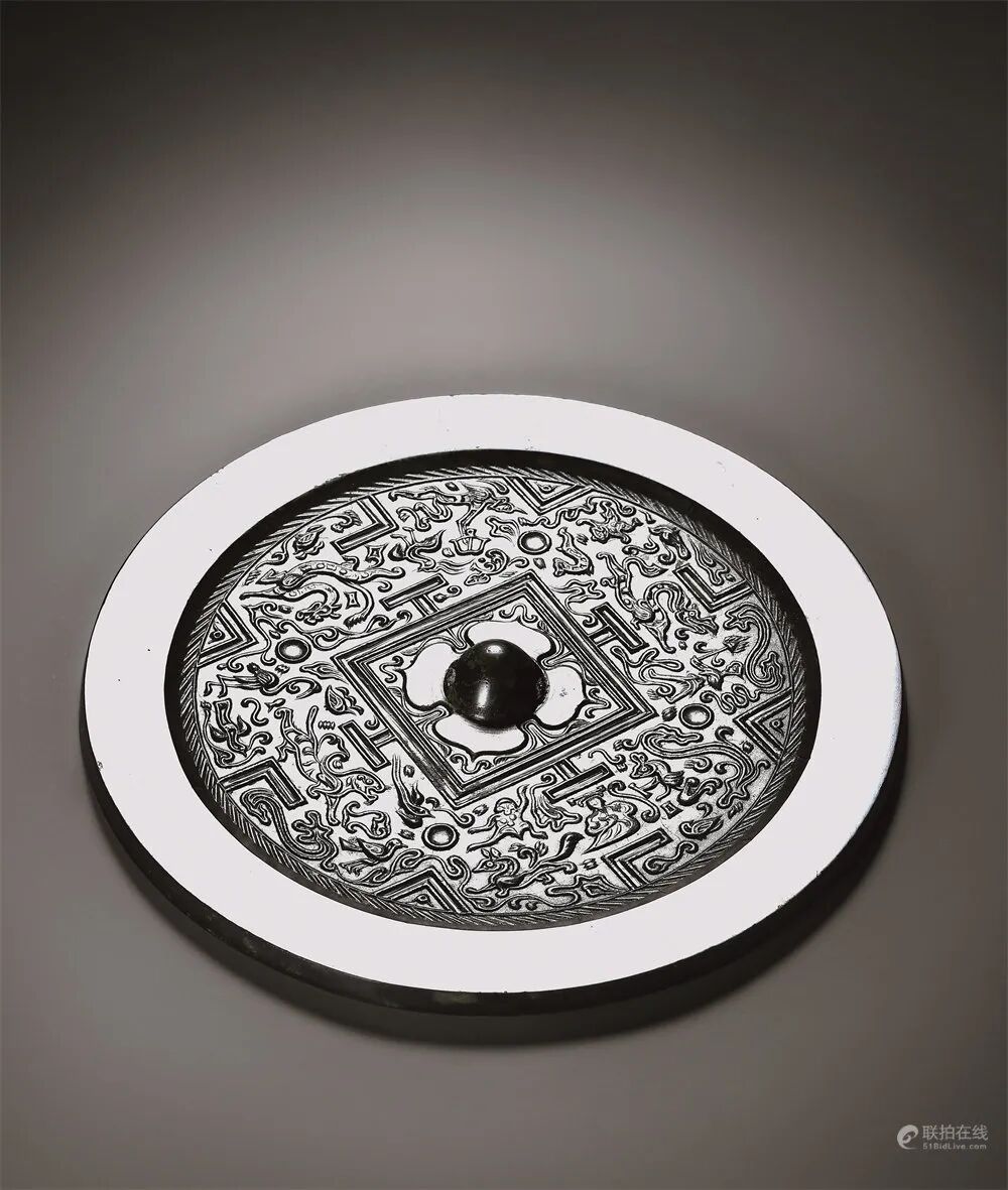 著录:《古镜今照》上册,P169,浙江省博物馆编,文物出版社。此镜繁缛的纹饰内容显示出一种铺天盖地,满幅而来的视觉感受,纹饰将画面布局得满满的几乎不留空白。相比较后代文人们青睐的空灵的美,它更使人感到饱满和实在,单纯洗练,呈现出当时中华本土的艺术审美传统。纹饰中后羿、三足乌、西王母、蟾蜍、玉兔相互关联,组成了一幅中国传统神话故事。