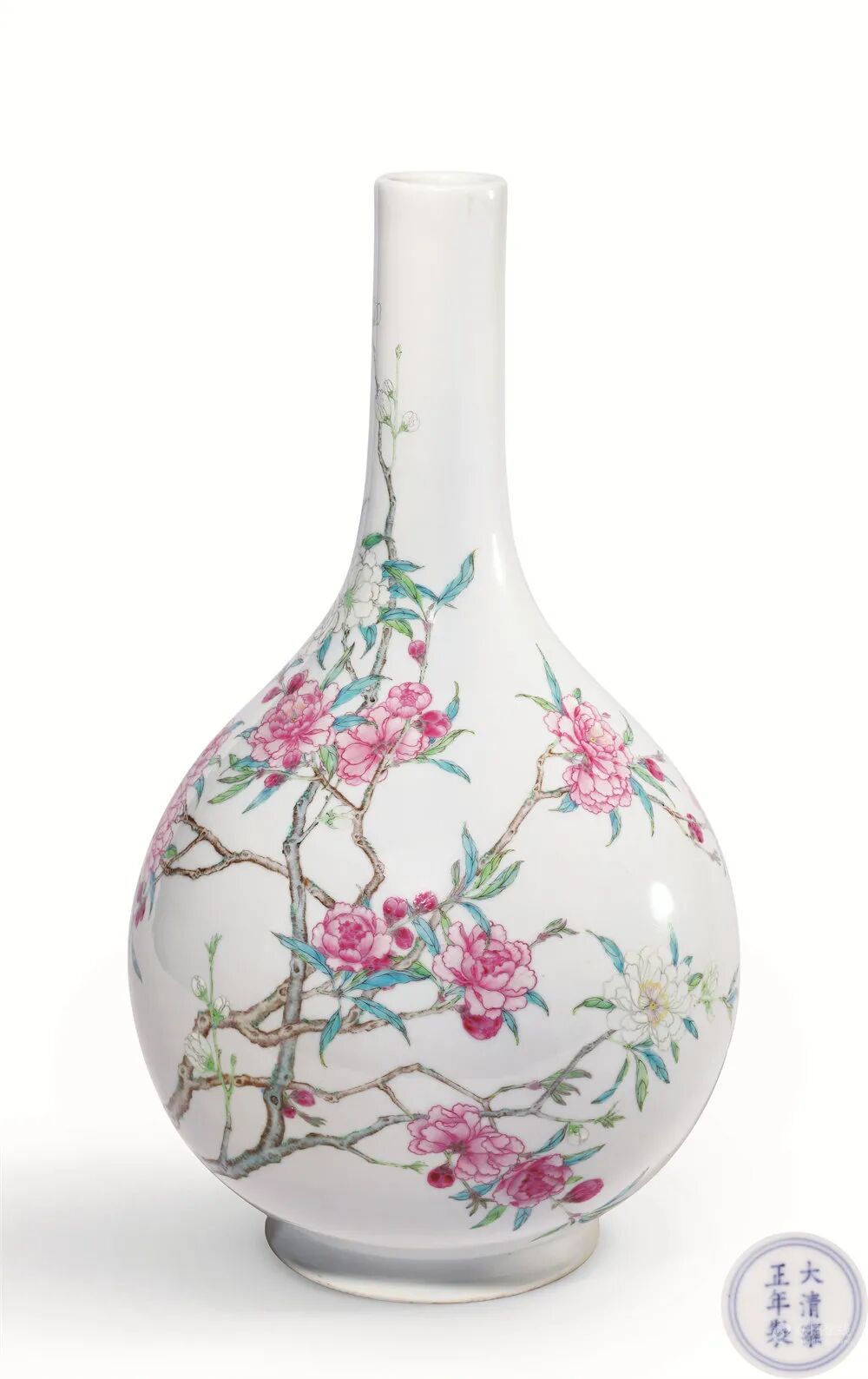 清雍正御制瓷胎洋彩珐琅 「春风碧桃图」胆瓶