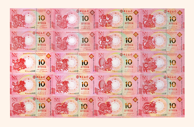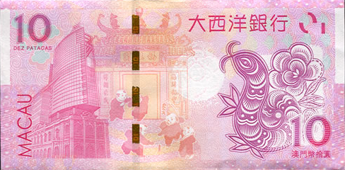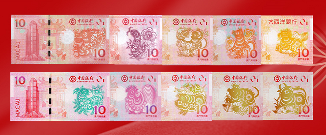 更为破天荒的是,澳门生肖钞是由中国银行(澳门)和大西洋银行(澳门)同时各发行一张,俗称对钞。从1999年我国发行纪念钞开始,这种情形还是开天辟地头一回。
