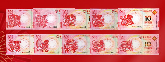 生肖纪念钞,从2012年起由澳门首次发行,目前已发行了10个生肖,剩下的虎和兔,按照发行计划和规律,也会一次同时发行。也就是说,此时集齐这10对生肖钞,机会刚刚好。