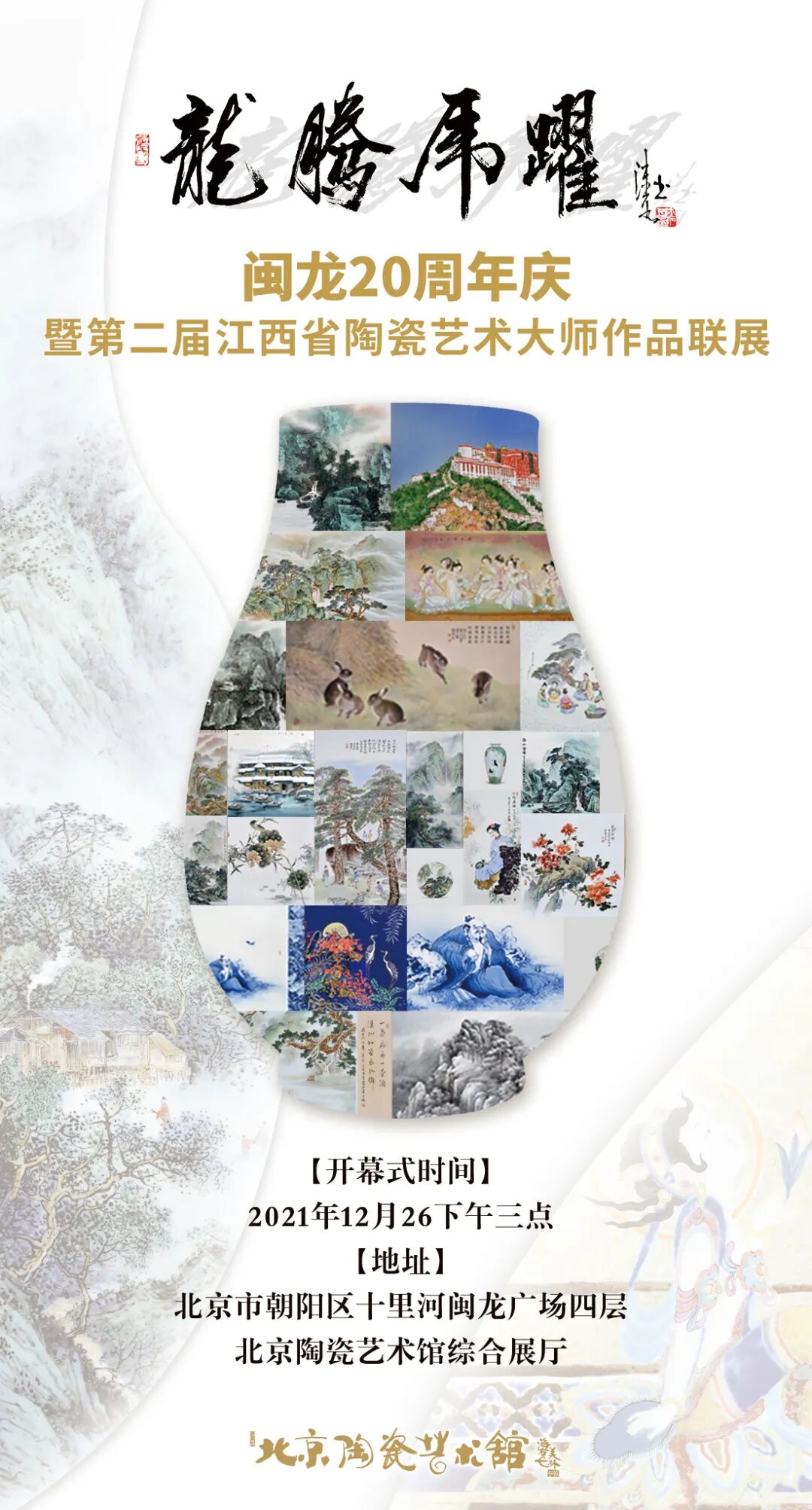 由闽龙集团主办,北京陶瓷艺术馆承办的“龙腾虎跃”——闽龙20周年庆陶瓷艺术展暨第二届江西省陶瓷艺术大师作品联展,将在2021年12月26日—2022年2月28日于北京陶瓷艺术馆持续开展。