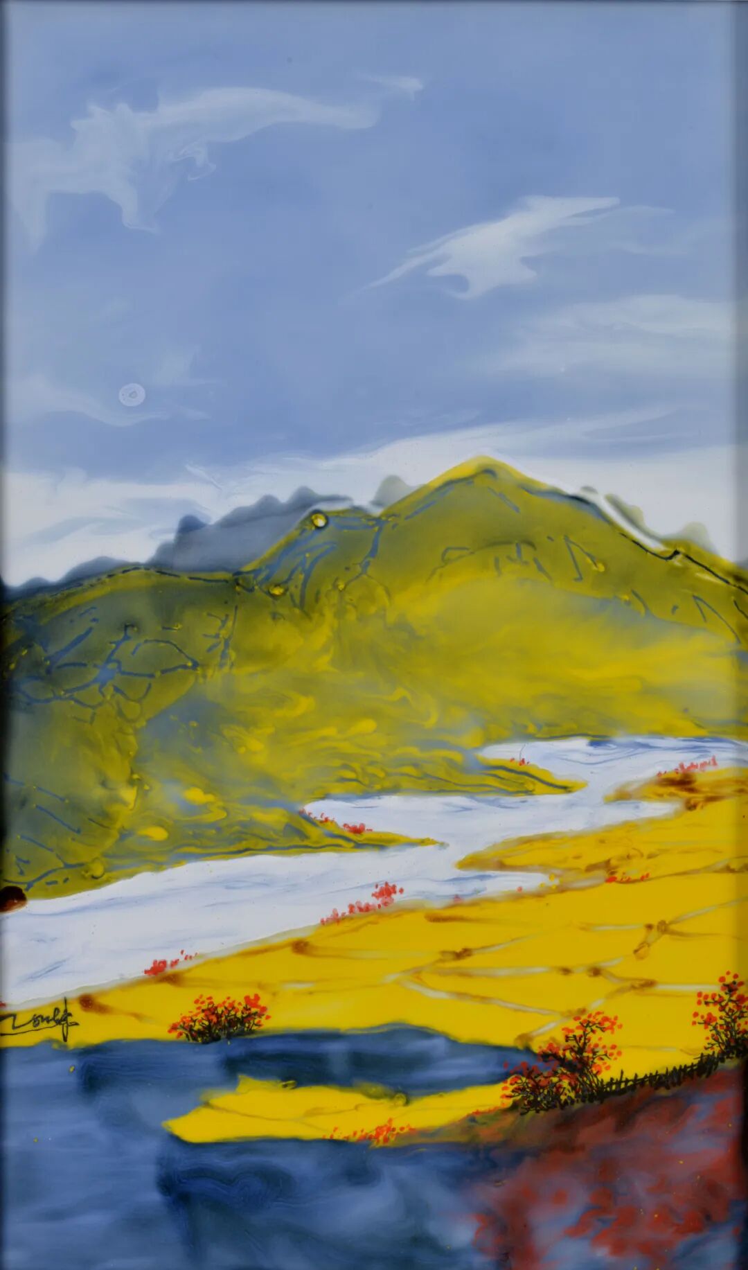 多年来刻苦学习,坚持实践写生,在釉下青花山水取得了明显特色,云雾青花山水系列作品被广为肯定。