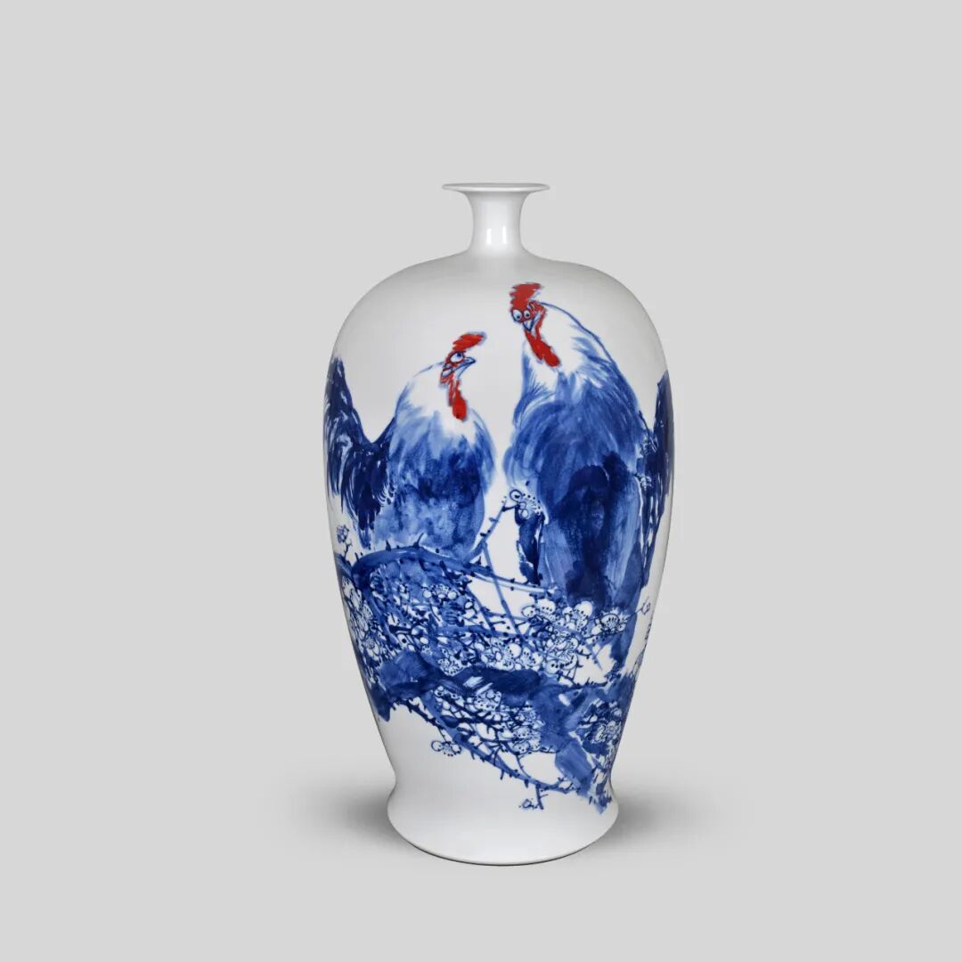 此瓶运用传统粉彩烧制,图中绘有国花牡丹,白头鸟,寓意富贵到白头。