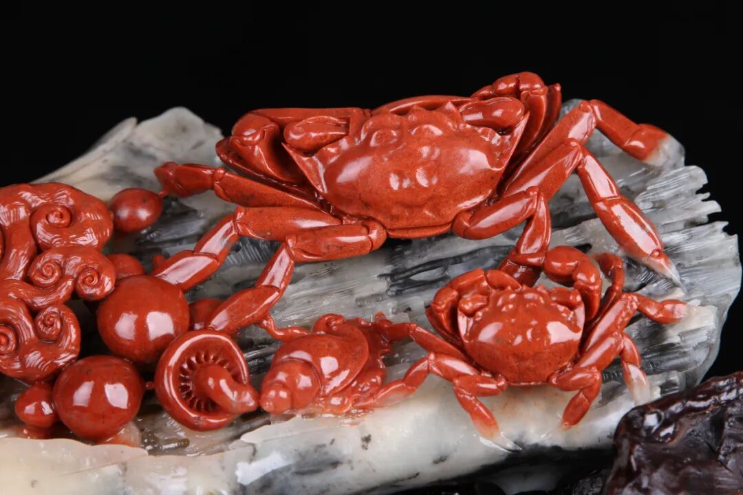 一看“因材施艺”是否恰当。寿山石雕艺术最大的特点就是利用石料的天然色泽,雕刻出造型和色泽相适应的作品。我们在鉴赏和选购寿山石雕作品时要看雕刻艺人在“因材施艺”方面的独到功力。看看是否充分利用石质、石形、石色、石纹来确定相应的题材与造型,而不是牵强附会。